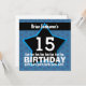 15:e Födelsedagsfesten VARJE ÅR Svart blå STAR BLUE-bakgrund. Den här contemporaryn med sina stora och feta bokstäver och skiktade stjärnor är en roligt för inbjudan att komma till ett barn, interpolera eller tonåring födelsedagsfirandet. Text på kort är helt anpassade - Du kan också ändra färgerna för text för ett annat utseende. Du kan experimentera med olika papprare typer genom att klicka på fliken "Inbjudningsalternativ" i det övre högerna. Jag rekommenderar den metalliska pappra som ge din födelsedag inbjuder till en festshimmer och shine. Passar för den 1:a 2:e 3:e 4:e 15:e 16:e 18:e 19:e 10:e 12:e 13:e 14:e 16:e 18:e 19:e födelsedagen eller det år du behöver.