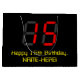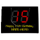 Den här gigantiska och roligt-födelsedagskalans presentväska har ett stort nummer "15" med ett rött utseende av den digitala visningen stil, tillsammans med meddelandet "Lycklig 15:e födelsedagen" och ett anpassat namn i text med den tjocka gulten, på en svart färgad. En sådan här presentpåse kan användas när man slår in presenter eller gåvor som ges för att hedra någons femtonde födelsedag. [~Z0000389]