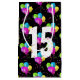Färgfulla 15-årsbubblor med party konetti mot svart bakgrund. Bakgrunden till färg kan ändras. Text kan redigeras för vilken ålder som helst.