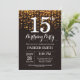 15:e födelsedagsinbjudan Guld Glitter Inbjudningar