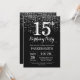 15:e födelsedagsinbjudan Silver Glitter Inbjudningar