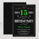 15:e födelsedagsinbjudan Svart och Grönt Typografi. Chalkboard. Svarta och vita bakgrunden. Vuxen födelsedag. Manliga Manar eller Kvinnor födelsedag. Barnpojke eller Dam Tonåring tonårsdagen Inbjudan. 13:e 15:e 16:e 18:e 20:e 30:e 40:e 60:e 70:e 80:e 90:e 100:e. Vilken ålder som helst.