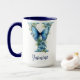 En personlig kaffekopp i olika nyanser av Blå med matchande fjäril, med monogrammet "Y". Anpassa den enkelt med ditt namn eller skapa en unik present till dina nära och kära. Det finns gott om utrymme för att lägga till ett citat eller meddelande eller till och med en bakgrund. Denna kopp finns också i olika stilar och färgkombinationer. Bläddra igenom kollektionen för att se exempel på denna teckensnittsstil på de olika koppstilarna och storlekarna.