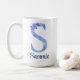 15 oz Monogram med akvarellblå och blommor Kaffemugg