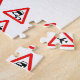 En samling triangeltrafiktecken som är isolerade på vitt.