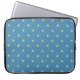 En neopren sleeve i chicen som skyddar din bärbara dator (upp till 15 tum) med små lägenheter av Lilies-of-the-Valley på blå bakgrund, från samlingen Posh & Painterly 'For the Kärlek of Lilies'.