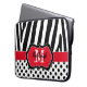 Den här chicen och trendiget personlig röd, svart och vitt zebra ränder och polka dots laptop sleeve har textrutor där du kan lägga till ditt namn och monogram. ***Skicka ett mejl till mig om du vill att en storlek SMALLER ska vara sammansatt, eftersom om du markerar den på egen hand kommer design- och textrutorna att glida fel. Om du behöver hjälp med att anpassa detta med din egen information kan du skicka e-post till niteowlstudio@gmail.com för hjälp.