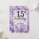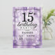 15th Födelsedaginbjudan med lilor stränger ljus med lilaglitterbakgrund. Purpurfärgad födelsedag. Barns födelsedag. Pojke- eller flickaBday inbjudan. 13th 15th 16th 18th 20th 21st 30th 40th 50th 60th 70th 80th 90:e 100., något åldras. Behaga klickar "skräddarsy den" knäppas och använder vårt designverktyg för att ändra denna mall för mer ytterligare customization.