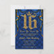 16-årsfest Royal Blue Guld Krona Inbjudningar