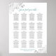 16 Bord Blommig Bröllopsplatskarta Vit & Turkos Poster