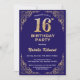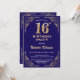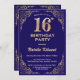 16:e födelsedag Blått och Guld Glitter Ram Inbjudningar