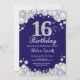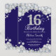 16:e födelsedag Blått och Silver Diamond Inbjudningar
