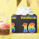 Den här roliga, färgstarka och roligt-födelsedagstecknet med papper design har ett stort nummer "16" och meddelandet "GRATTIS PÅ FÖDELSEDAGEN,", båda färgader med en regnbågsspektrumövertoning som inspirerade mönster, tillsammans med en fet gult personlig mottagare namn. Bakgrunden är svart på färgad. Roligt som är papper som denna kan användas när en gåva eller present är ge för att hedra någons 16-årsdag. [~Z0000475]