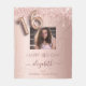 En gåva till en girig och glamorös sötad 16:e födelsedag från hennes bästa vänner. Ro guld, rosa övertoningsbakgrund med färgad från elegant ro i guld, droppar från glitter, färgdroppar. Anpassa och lägg till ditt eget högkvalitativa foto av födelsedagsflickan och ditt eget namn. Texten: namn på födelsedagsflickan skrivs i mörk ro guld med ett modernt handskript med stil med smak. Nummer 16 skrivs med ett trendig-stil-teckensnitt. Om du bara vill behålla utslagen tar du bort exemplet namn lämnar du blankstegen eller symbolerna framför och efter namn.