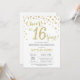 16:e födelsedag Guld Glitter Diamond-inbjudan Inbjudningar