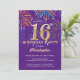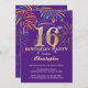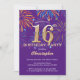 16:e födelsedag Lila och Guld regnbåge Fireworks Inbjudningar