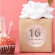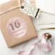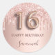 16:e födelsedag ro guld glitter rosa-ballong stil runt klistermärke