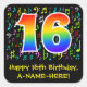 Den här roligten, den klara och färgstarka etikettdesignen på födelsedagskalemat har ett stort nummer "16" med en regnbågsspektrumövertoning som inspirerar mönster. Det innehåller också budskapet "Lycklig 16:e födelsedag" och personlig namn. En del av bakgrunden har ett mönster med olika musik noter och symboler med olika färg och storlekar. Sådana födelsedagstekar kan vara roligt till använda som födelsedagsfest dekoration, eller kanske ge som födelsedagspresent, eller kanske användas när man fyller år presenter som ges i firande på en kompositör i sång, en sångare, en musiker eller någon annans sextonårsdag. [~Z0000423]