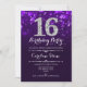 16:e födelsedagsinbjudan. Elegantens lila, vit design med faux glitter silver. Vuxens födelsedag. Har diamanter och skriptteckensnitt. manar eller kvinnor på inbjudan. Perfekt för en snyggt födelsedagsfest. Berätta om du behöver anpassa dig ytterligare.