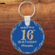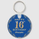 16:e Födelsedagsfesten Blått och Guld Glitter Ram Nyckelring
