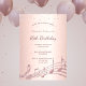 En modern, snyggt och glamorös inbjudan till en svensk 16, 16:e födelsedagsfest. En faux ro guld-metallisk bakgrund tittar med en elegant faux ro guld diamant sprinkle och musik noter. Namn är skrivet med ett modernt skript för färgaden ro guld i mörk, skrivet med stil. Mallar för information om party.