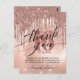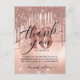 Den moderna 16:e födelsedagsfesten tack vare vykortet. Utformningen har ro faux glitter & foil bakgrund med glatt glitter och typografiskript "tack" på framsidan och söt 16 på baksidan. Anpassa med ditt tack, datum och namn.
