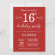 16:e födelsedagsinbjudan Röd Inbjudningar