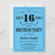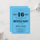 16:e födelsedagsinbjudan Svarta och blå typografi. Svart och blå bakgrund. Barns födelsedag. Manliga Manar eller Kvinnor födelsedag. Barnpojke eller Dam Tonåring tonårsdagen Inbjudan. 13:e 15:e 16:e 18:e 20:e 30:e 40:e 60:e 70:e 80:e 90:e 100:e. Vilken ålder som helst.