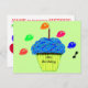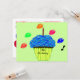 Yummy blue frosting chokladkaka med färgad sprinkles utseende, och röd och vit ljus med färgfull flimmerlåga framför inbjudan-kortet med brev stavning PARTY i färgfyllda godis runt kakor. Anpassa cupkakomslag för ANY ålder 1:a, 5:e, 16:e eller lägg till namn! Chokladkakor på baksidan har blå frost och grönt frodas i sprinklade chokladfärgade muffinsar och färgstarka party-ballonger inklusive rött, grönt, blått på ljust grönt bakgrund. Originalteckning av TamiraZDesign.
