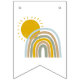Den här babyduschbuntningen av flagga har en kantig pastellblått och senapsregnbåge med komplimangande sol och ett typsnitt för eleganten. Det här är perfektens babydusch inbjudan för din bohemiska, sommar- eller trädgårdsbabydusch.