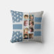 16 fotosidasamling dekorativ kudde / kudde Lägg till 8 foton på framsidan och ytterligare 8 på baksidan. Grått och blått med löv och rand.