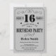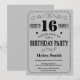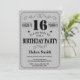 16th Födelsedaginbjudansvart och silvergrått Inbjudningar