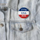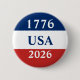 At the top of this red white and blue button is the year in white text. The rest of the button says USA 2026