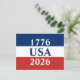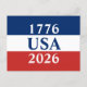 1776 USA 2026 Röd Vit och Blå Patriotisk Vykort