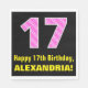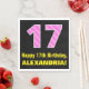 Den här roligten och den glatta pappra napkin-designen med födelsetecknet har ett stort nummer "17" med en rand mönster som innehåller hjärtformer färgadens ljusa rosa rosa och mörkens . Det innehåller också hälsning:s födelsedagsmeddelande "Lycklig 17:e födelsedag" och ett eget namn. Pappra servetter som denna kan vara roligt till använda vid ett party som hålls för att fira någons sjuttonårsdag. [~Z0000436]