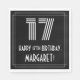 I vintage inspirerade stil och 1920-talet-1930-talet stil den pappra napkin-designen med födelsedagstext ett stort Art Deco-utseende inspirerat nummer "17", meddelandet "17:e BIRTHDAY,", en personlig namn och en gräns LYCKLIG som består av mönster. Roligt, personlig pappra blöjor av det här slaget kan användas vid en firande som hålls för att hedra någons 17-årsdag. [~Z0000395]