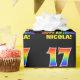 Den här färgstarka, roligt och glada födelsedagspressen med papprare design har ett stort nummer "17" och meddelandet "GRATTIS PÅ FÖDELSEDAGEN", båda färgader med en regnbågsgradient inspirerad mönster, tillsammans med en fet gult anpassningsbar mottagare namn. Bakgrunden är svart färgad. Roligtens födelsedagskalender som är så här papprare kan användas för att figurera en gåva eller present som ges för att fira någons sjuttonde födelsedag. [~Z0000475]