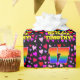 Den här lycklig och roligtens födelsedag med papper design har ett stort nummer "17" med en regnbågsspektrumövertoning som inspirerade mönster, tillsammans med meddelandet "17:e födelsedagen i Lycklig" och ett anpassade namn. Bakgrunden är en mönster av lila-, rött- och rosa hjärtformer av olika storlek. Att packa pappert som detta kan användas när man ge en gåva eller present till heder för någons sjuttonårsdag. [~Z0000549]