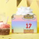 Den här roligten och den glatta födelsedagskalans pappra utformning ger en bild av en treskiktad födelsedagskalas med flera stearinljus ovanpå, där siffran "17" visas tillsammans med meddelandet "17:e anpassningsbarna dagen" och en tecknad mottagare namn. Bakgrunden har en gradient mönster som är inspirerad av skalan för pastellregnbåge med flera färg. Det kan vara ett roligt att slå in en födelsedagspresent eller gåva som ges till någon som firar sin 17-årsdag. [~Z0000622]