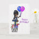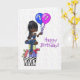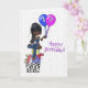 Ett sött kort för en 17-årig flicka. Kortet har en storögd, mörk-flådd flicka sitta på paket-ballonger. Konfetti-bakgrund.