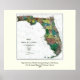 1856 Karta i delstaten Florida av Columbus Drew Poster