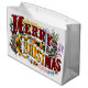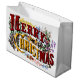 1876 God Jul färgrik presentpåse med röda, gröna, blå, lila och gyllene färger.