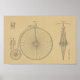 1881 Patent Art-utskrift för höghjulscykeldesign Poster
