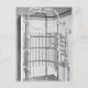 En duschdusch från 1887. Den har en bur som lodrät rör. Flera ventiler är längs ett lodrät vid högerna och ett stort duschhuvud i mitten ovanför.