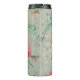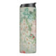 1890 British Vintage Fabric Fine Art Reproduction with rosa ros and gerber daisys on a ljust grönt bakgrund with blue ribbon.