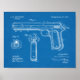 1897 Vintage pistol genom Browning. USA:s patenttekniska utformning teckning. Alla våra amerikanska patentverk teckning har återställts och förbättrats så att de ser underbara ut på små till stora utskrifter för framtagen konst. Fler patentutskrifter under vårt avsnitt "USA Patent Prints". Blå teknisk konstruktion papper bakgrund med vit linje teckning.