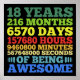 Lustigt 18-årsformat i vintage stil för 18-åriga flickor och pojkar. Fantastisk vintage födelsedagseftergift för att ha vunnit 18 pojkar och flickor, stolt bära i födelsedagsfest samtidigt som man firar med familj och vänner. Coola för son, dotter, tonåringar. Perfekt ger dig en idé till din älskade pojke eller flicka på hennes födelsedag. Med åldern på år, månader, dagar, timmar, minuter och sekunder kommer den här roliga konfekten att göra en unik födelsedagskalkyl för 18 år gamla pojkar och flickor. Firar födelsedag i stil!