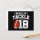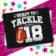 Denna födelsedagsdesign för fotboll är perfekt för en 18-års födelsedagstema för fotboll för att fira 18-årsdagen! Innehåller 'Redo att tackla 18' 18-års födelsedagsfotbollscitat med fotbollsgrafik. Perfekt för alla som älskar fotboll som blir 18 år!