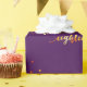 Elegant och modern för en 18-dagars födelsedagspresent. Chic lila bakgrund och faux guld text skriven med trendig handskript stil: hej arton. Med gyllene prickar som dekoration.