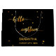 Elegant och modern för 18:e födelsedagsfesten. Svart bakgrund och faux guld text skriven med ett handskript i trendiget stil: hej arton. Med gyllene prickar som dekoration. Mallar för namn och datum, guldbrev.